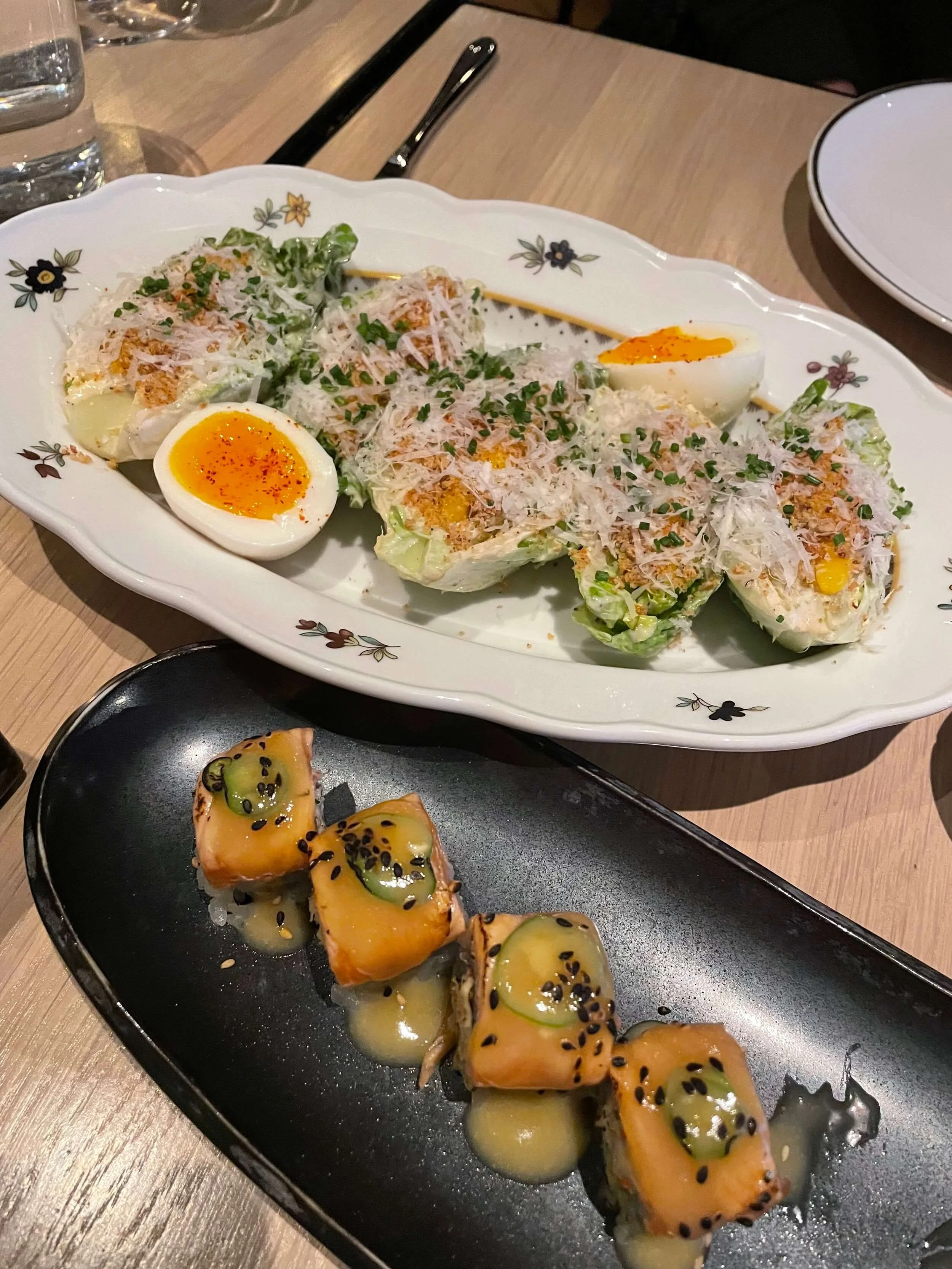We were debating between Catch Steak or Steakhouse No. 316 for our anniversary dinner and opted for Catch, which was delicious. We started with the Catch Roll and Caesar Salad. We’d never seen Caesar served this way, but it was amazing. Will got the Truffle Butter Fillet and I got the Mediterranean Branzino. All the sides looked too good to choose from, so we went with Waffle Fries, Grilled Asparagus and Simple Mashed Potatoes. We were so full and didn’t get dessert, which is very unlike us, but can you blame us with all the other food?!